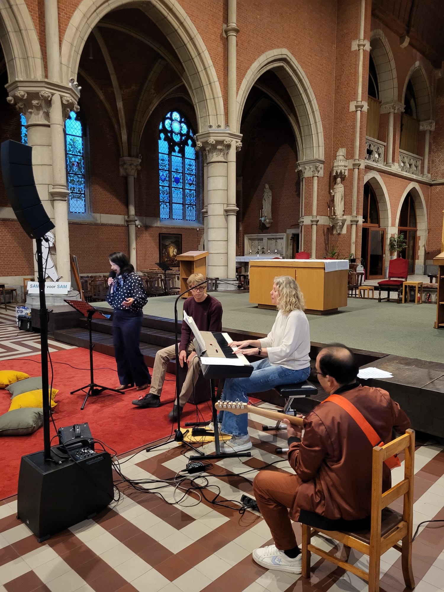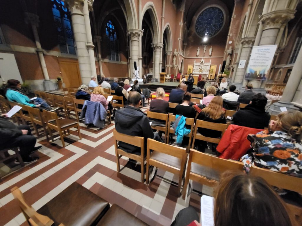 Van het serene ‘Alleluia Adonia’, tot het uitbundige ‘Feest van Genade’ – zo was het uurtje zingen en bezinnen op 5 oktober met deze keer méér zingen, méér instrumentale en vocale begeleiding en ietsje méér dan een uur. Er waren ook méér deelnemers dan voorheen.